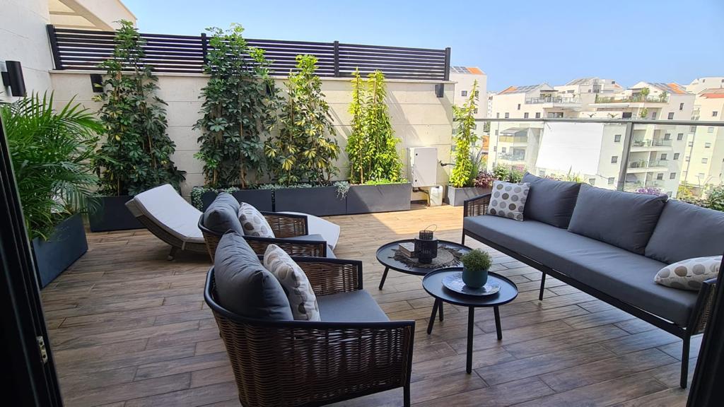 *תכנון צמחיה במרפסת הסלון ובמרפסת הגג- כולל מיכלים, סוגי צמחים ומערכת השקיה