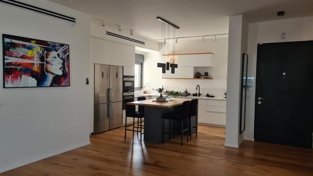 דירת דופלקס בת שישה חדרים בשכונה החדשה "נווה זמר" ברעננה. בעלי הדירה רכשו את הדירה מיזם הבניין וביקשו לבצע חלוקה מחודשת המותאמת לצרכים הפרטיים שלהם. מאחר ובעלי הדירה התגוררו בחו"ל בזמן תהליך השיפוץ, וכוונתם היתה להכנס ולהתגורר בדירה בתוך פרק זמן של חודשיים מיום קבלת המפתח, הפרוייקט הצריך שיפוץ ואיבזור הדירה באופן מלא בלוח זמנים שנראה כמעט בלתי אפשרי.