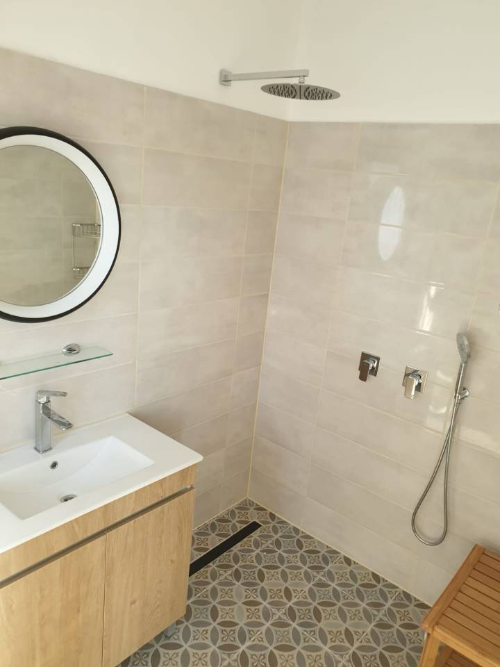 הדיירים פנו אלי בהמלצה של לקוחה, חברה של המשפחה. זוג+3 ילדים . הדירה, דירת ששה חדרים, נקנתה מקבלן בשלב שלא ניתן לבצע שינויים. השיפוץ נעשה לאחר קבלת המפתח. הדירה הוסבה לדירת חמישה חדרים לטובת הוספת חדר עבודה המסופח לחדר שינה הורים.