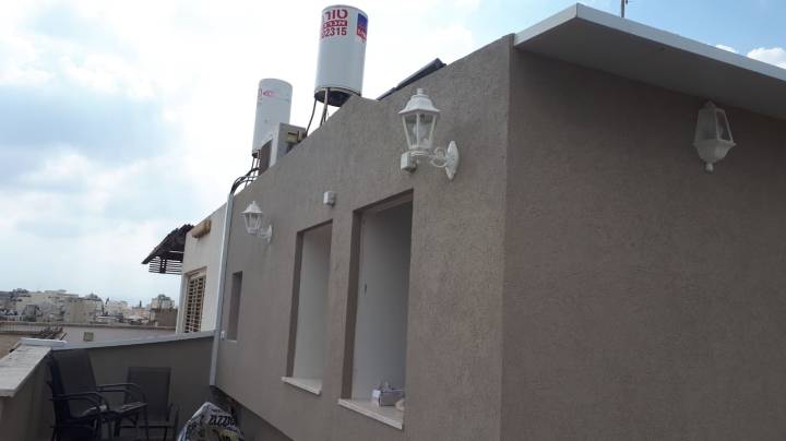 חוץ- החלפת ריצוף מרפסת הגג, תאורת חוץ היקפית ונקודתית ותכנון מטבח חיצוני בגג.